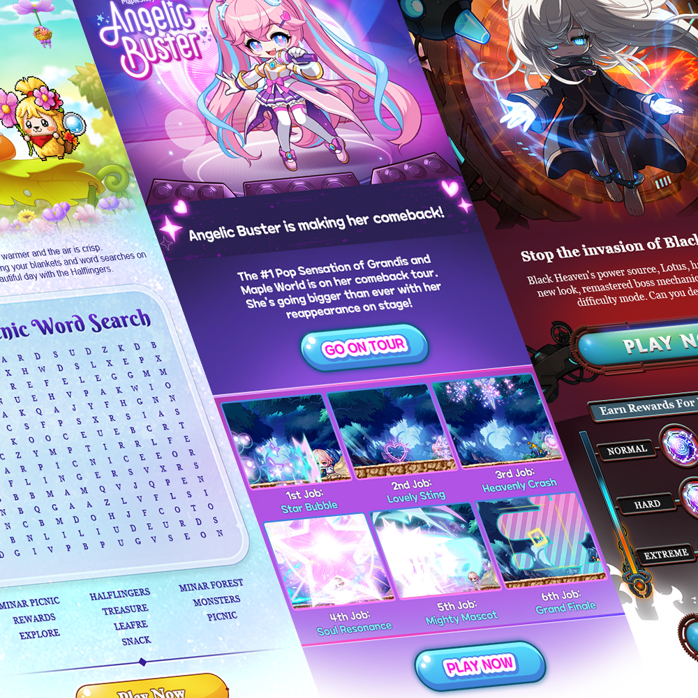 When I first joined Nexon, I was assigned to the MapleStory team, where I have created thousands of assets to support updates, events, and new content releases. Over time, I developed an extensive and diverse body of creative work that has helped shape and promote the brand.